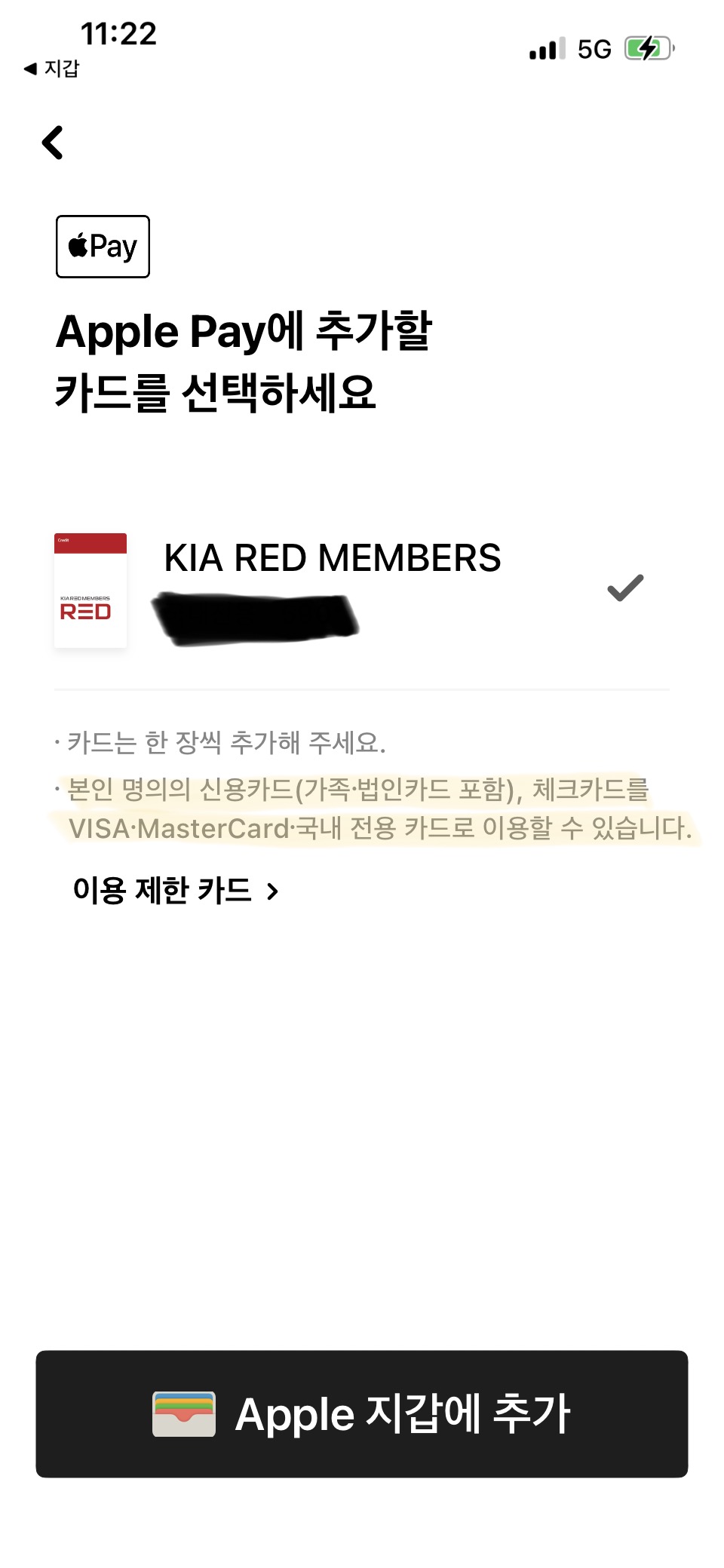 현재 한국에서는 현대카드를 통해서만 등록이 가능해서인지