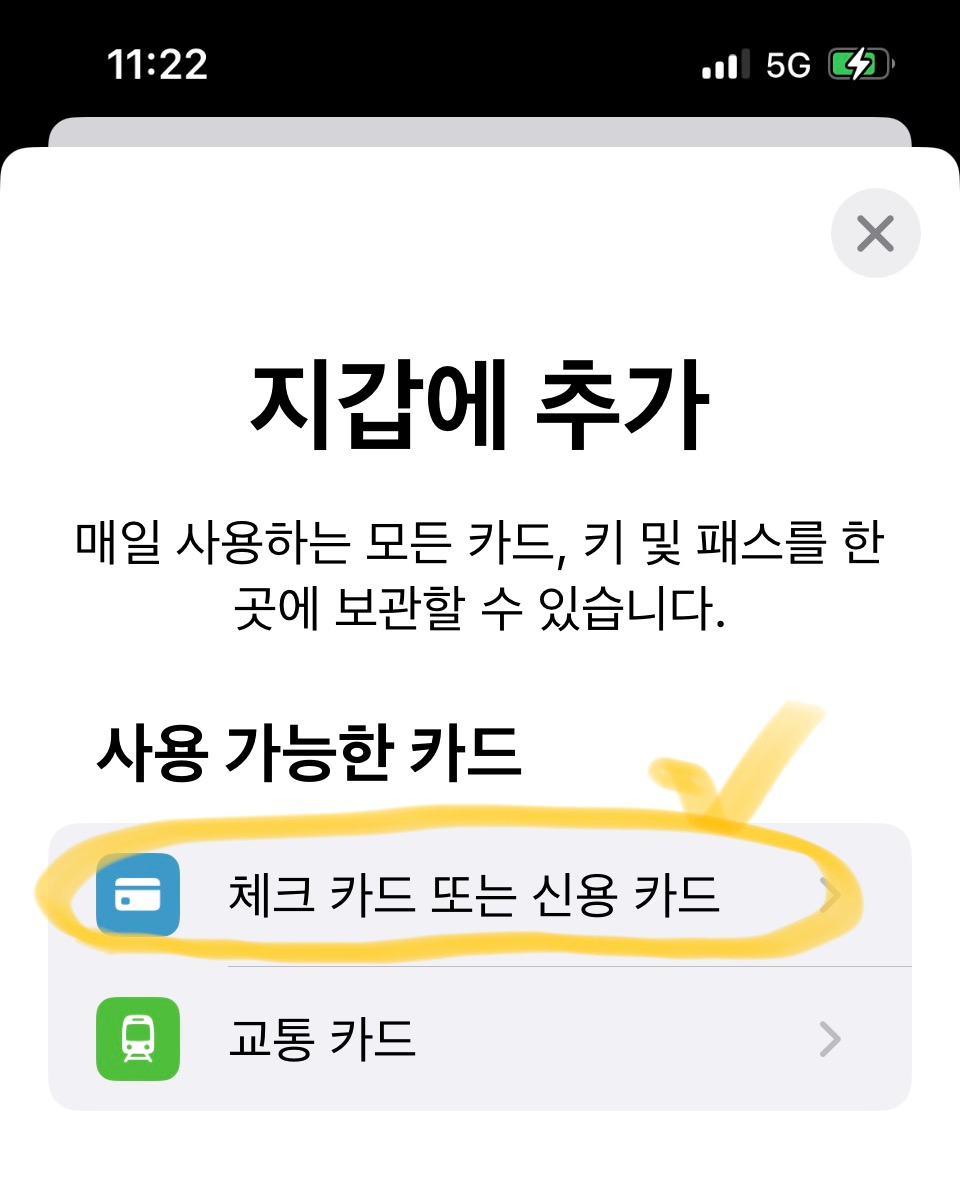 3. 체크카드 혹은 신용카드 부분 눌러줍니다